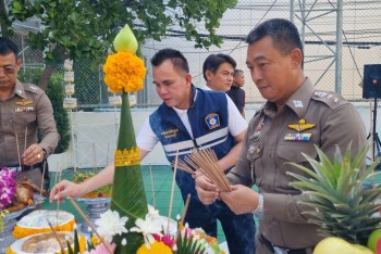 สภ.รัตนาธิเบศร์ ร่วมกับคณะกต.ตร. จัดพิธีบวงสรวงศาลพระภูมิเจ้าที่ และศาลตายาย เพื่อความเป็นสิริมงคล