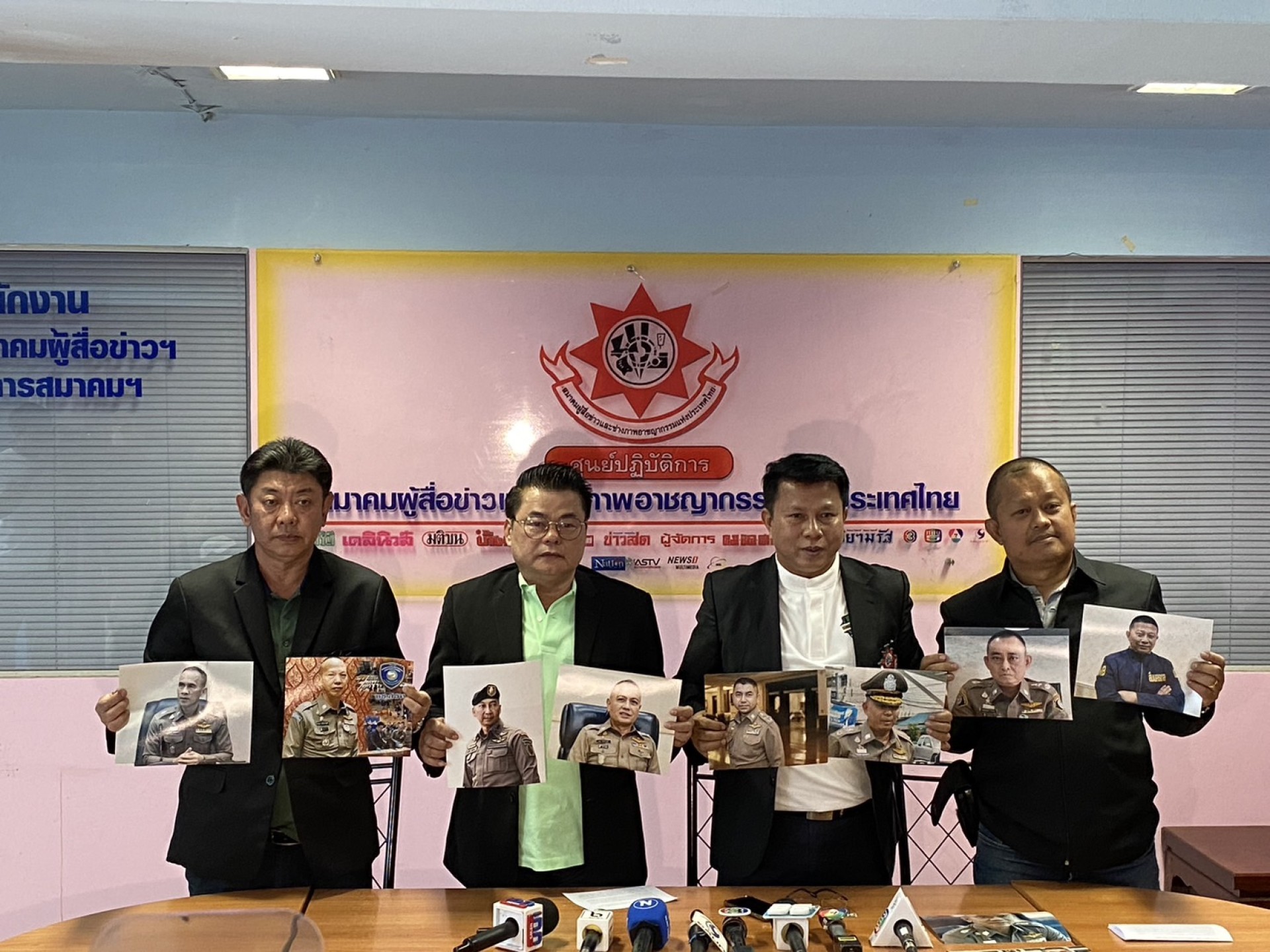 เมื่อเวลา 11.30 น. วันที่ 27 ธ.ค. 66 ที่ศูนย์ปฏิบัติการสมาคมผู้สื่อข่าวและช่างภาพอาชญากรรมแห่งประเทศไทย นายไพโรจน์ เทศนิยม นายกสมาคมฯ คณะกรรมการบริหารสมาคมฯ ตัวแทนสื่อมวลชนแขนงต่างๆ ร่วมกันแถลงการณ์ตั้งฉายาตำรวจประจำปี 2566