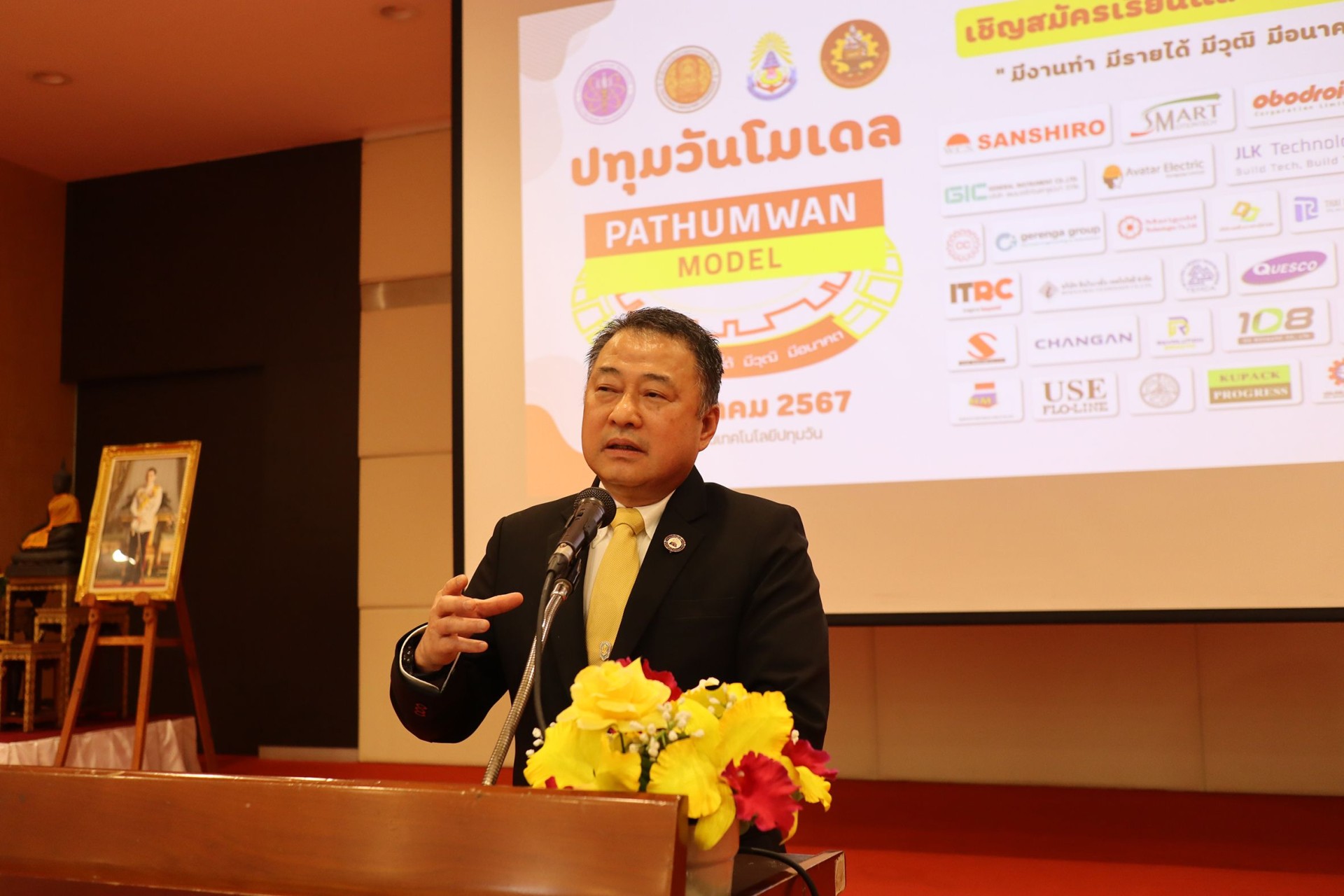 โดยมีรองศาสตราจารย์ ดร.เสถียร ธัญญศรีรัตน์ อธิการบดีสถาบันเทคโนโลยีปทุมวัน พร้อมด้วยคณะผู้บริหาร ให้การต้อนรับศาสตราจารย์ ดร.ศุภชัย ปทุมนากุล รองปลัดกระทรวงการอุดมศึกษา วิทยาศาสตร์วิจัยและนวัตกรรมซึ่งท่านประธานพิธีได้กล่าวเปิดโครงการและบรรยาย เรื่อง “การพัฒนาศักยภาพนักศึกษาสู่ภาคอุตสาหกรรมในอนาคต” จากนั้นนายอรรถการ ตฤษณารังษี (รองประธานคณะกรรมการพัฒนาการศึกษาหอการค้าไทย นายกสภาสถาบันการอาชีวศึกษาภาคกลาง 5) บรรยายเรื่อง “ทิศทางการพัฒนากำลังคนตอบโจทย์ภาคอุตสาหกรรมในอนาคต” ทั้งนี้ภายในงานมีเครือข่ายบริษัทภาคอุตสาหกรรม ร่วมออกบูธแสดงผลงานความร่วมมือ แสดงนวัตกรรม พร้อมทั้งรับสมัครงาน มากกว่า 30 บริษัท