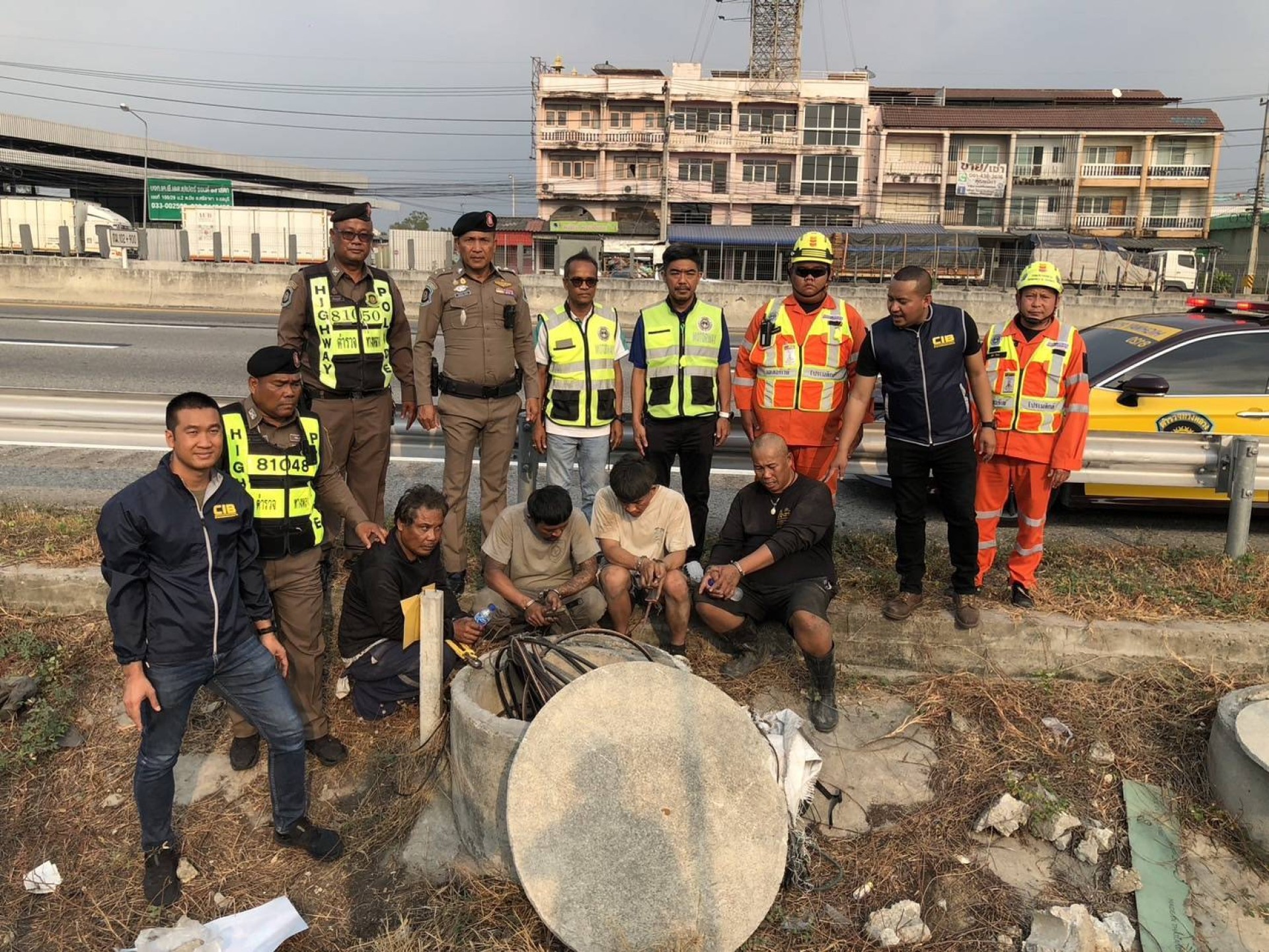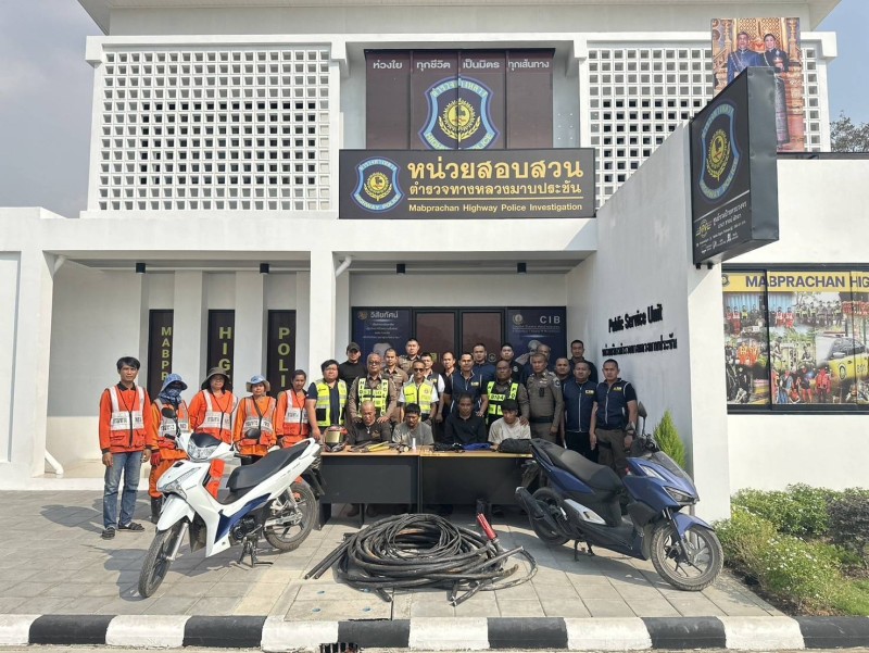 ตำรวจสอบสวนกลาง (CIB) รวบ 4 ผู้ต้องหาแสบ บุกลักสายไฟในทางมอเตอร์เวย์